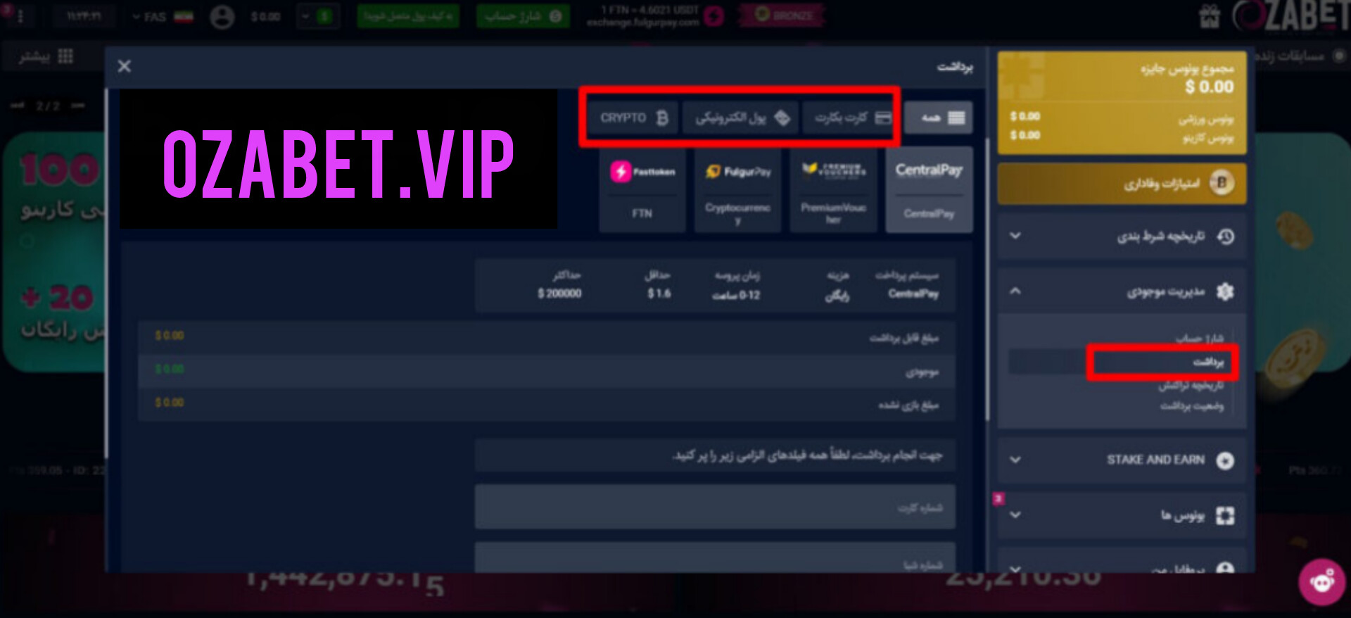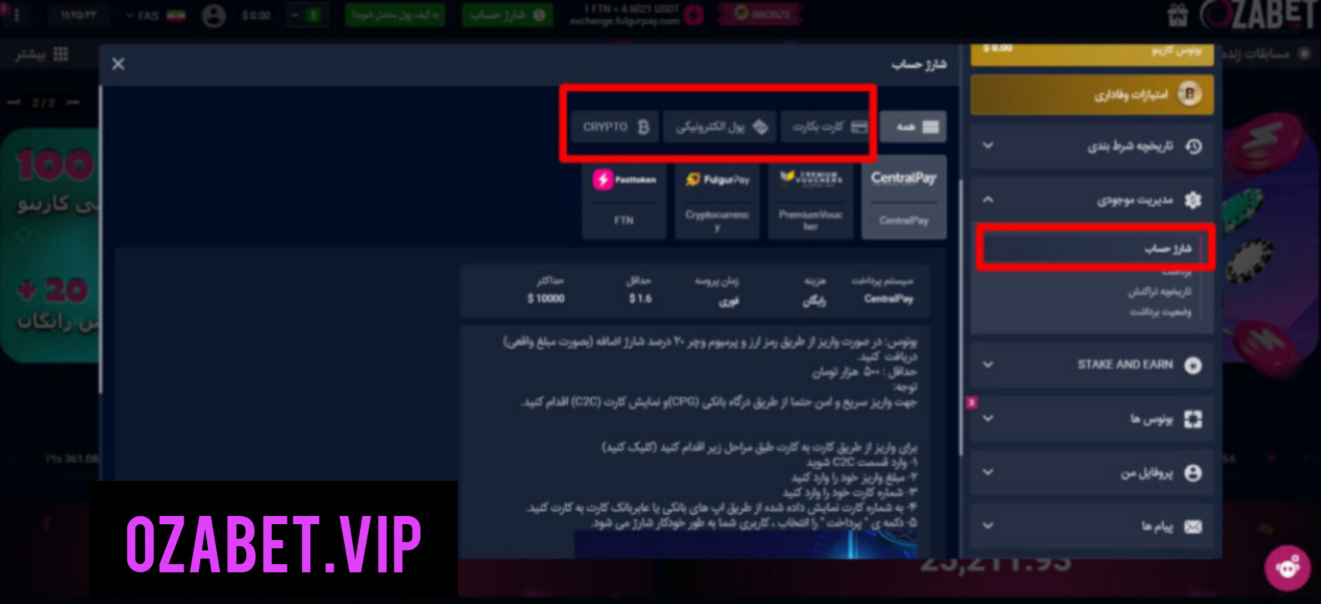 نحوه افزایش موجودی از طریق ووچر در اوزا بت