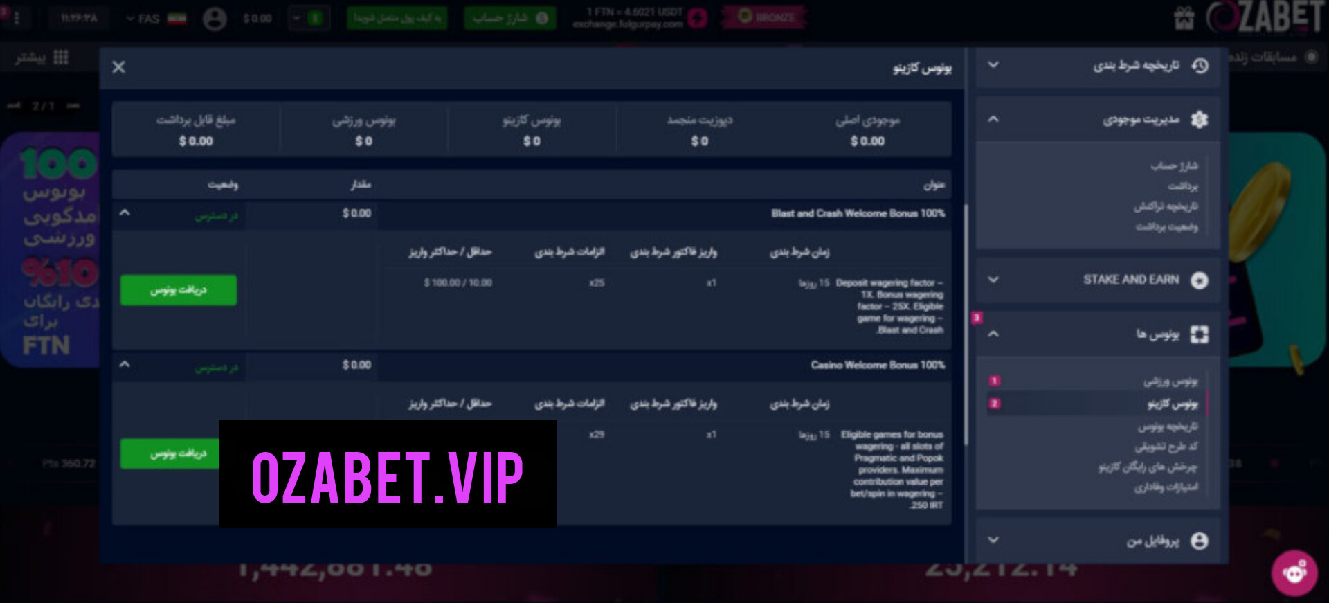 آیا اوزا بت بونوس های ویژه ارائه میدهد؟ بله، اوزا بت بونوس های جذابی برای کاربران جدید و فعلی ارائه می دهد، اما شرایط استفاده از این بونوس ها باید با دقت مطالعه شود.